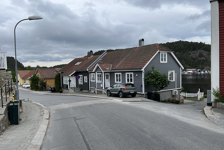 GAMLE BILDER: «Hakedal skydsstation og Landh.» står det på dette postkortet som er fra tidlig 1900-tallet. Bildet forteller en historie som er lett å glemme nå som støyskjermer hindrer sikten mot hus og hager på den ene sida, fotballbanene på Elvetangen på den andre.