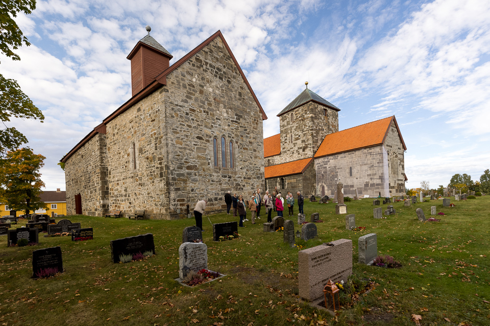 Deretter fikk vi Anne Lise Jordstad som guide på resten av turen som startet på Steinhuset, også er fra middelalderen. Så gikk turen til Hadeland folkemuseum, for medbragt lunsj, før vi dro videre på Kongeveien til Gamle Tingelstad kirke som må ansees som en bortgjemt perle fra 1200 tallet. Alt i alt en fin og interessant tur i et nydelig høstvær.