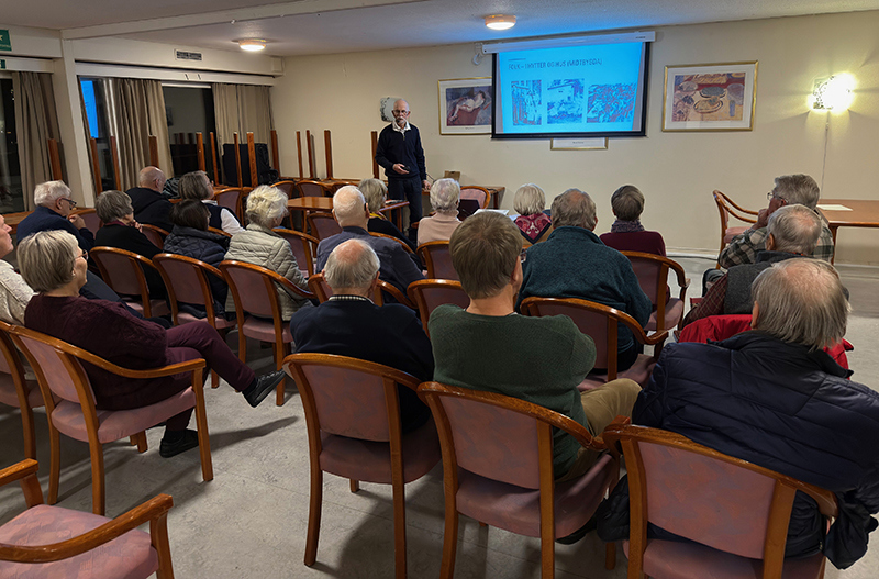 fortalte Erling Birkedal da han presenterte 2026-kalenderen i historielagets julemøte i
